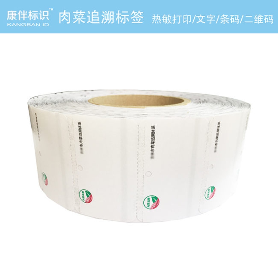 “康伴標識TM”肉菜追溯標簽,使用熱敏打印,可打印文字、條碼、二維碼等,已被眾多試點城市使用并獲得認可好評。