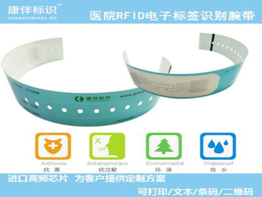 康伴標(biāo)識(shí)-醫(yī)用級(jí)別RFID電子標(biāo)簽腕帶,基于人體生物學(xué),自主研發(fā)工藝,采用進(jìn)口環(huán)保納米硅材質(zhì),搭載進(jìn)口電子芯片,為醫(yī)院提供醫(yī)用級(jí)標(biāo)準(zhǔn)、更智能識(shí)別方案。