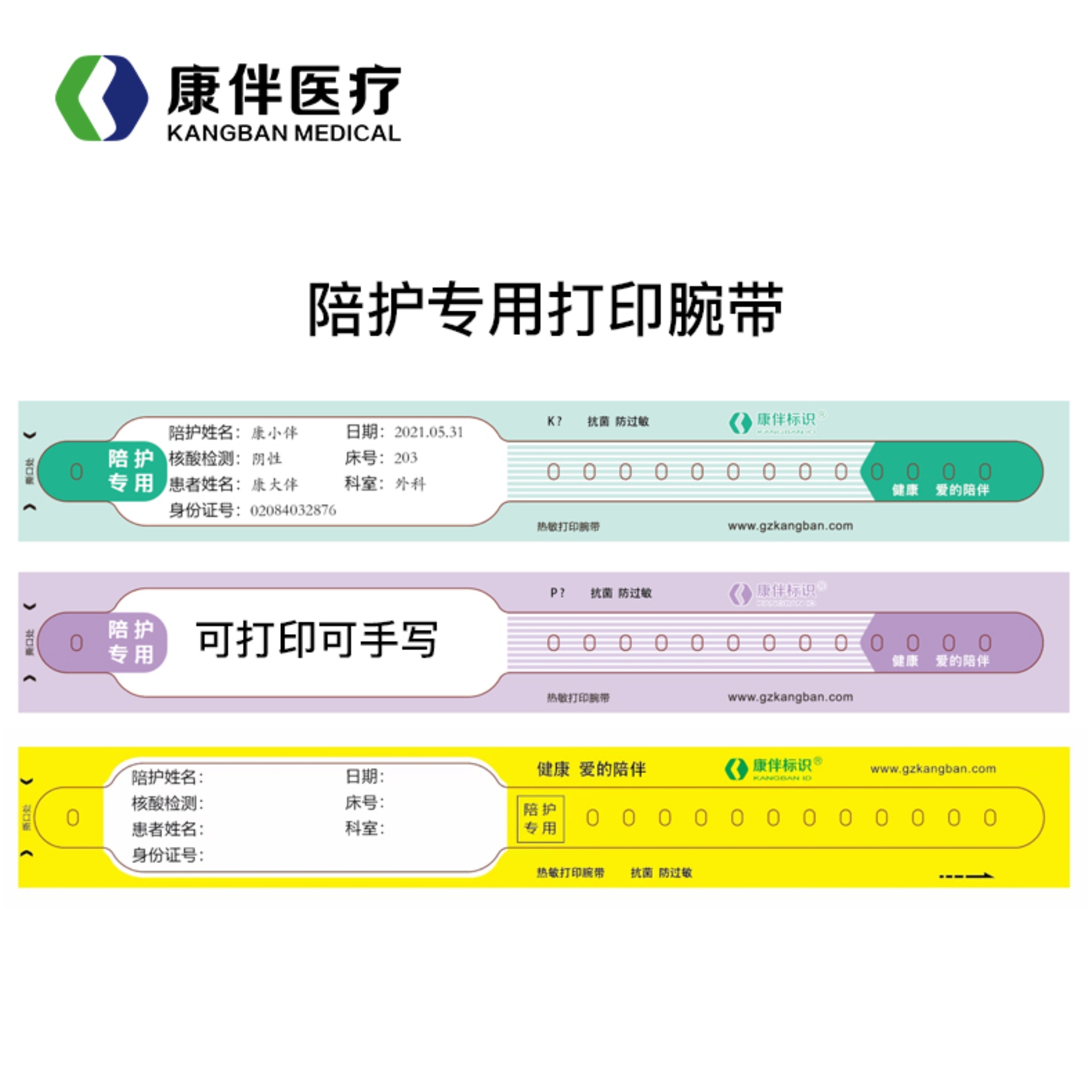 腕帶作用:腕帶是各項(xiàng)診療操作前識(shí)別患者身份的重要標(biāo)識(shí),適用于在醫(yī)院就醫(yī)的住院及急診患者的護(hù)理陪護(hù)親屬身份確認(rèn)。